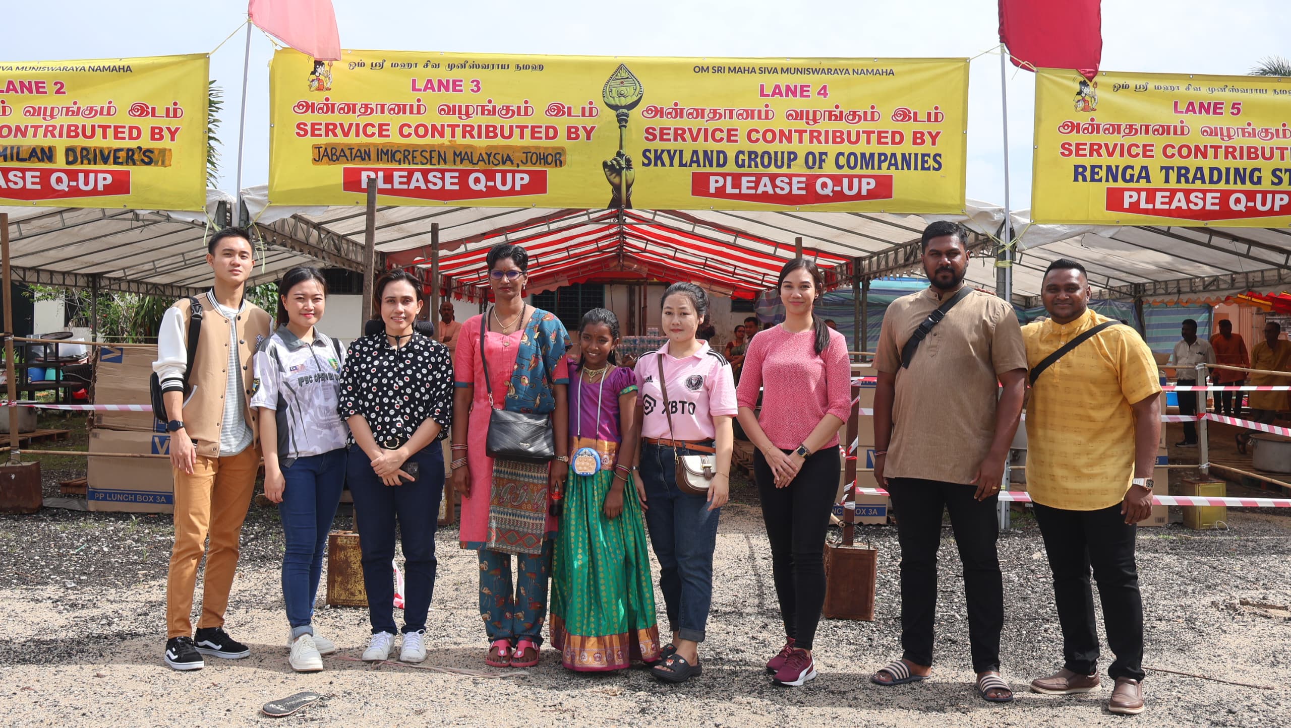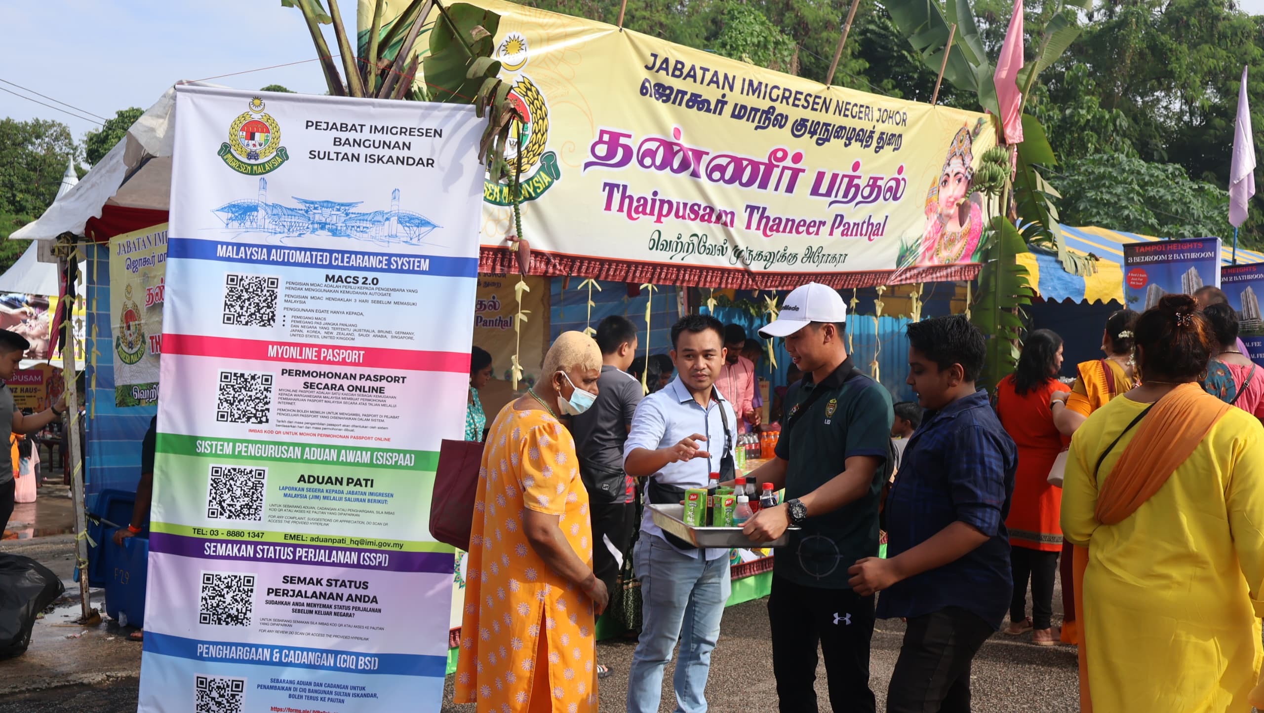 தைப்பூச விழாவில் பங்கேற்ற பக்தர்களுக்கு ஆலயம் வழங்கிய உணவோடு, இனிப்பு பலகாரங்கள் குடிநீர்ப் ஆகியவற்றை ஜோகூர் குடிநுழைவுத் துறை அதிகாரிகளால் வழங்கப்பட்டன.