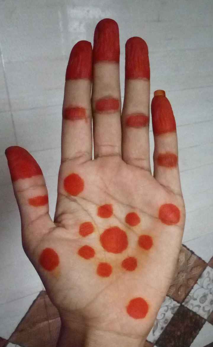 கையை வைத்தே ஒருவரின் கடந்த காலம், நிகழ்காலம், எதிர்காலத்தை பற்றி சொல்ல முடியும் என்பது அனைவருக்கும் தெரியும். அப்படிப்பட்ட ரேகைகள் ஒன்று கூடும் உள்ளங்கையில் மருதாணி வைப்பதால் ரேகைகள் பளிச்சிடும். முந்தைய காலத்தில் மருதாணி வைக்கும் போது, உள்ளங்கையில் பெரிய வட்டமும், அதைச் சுற்றி சிறிய புள்ளிகள் போன்றும் வட்ட வடிவில் வைப்பார்கள். நம்முடைய முன்னோர்களும், அவர்கள் கற்றுக் கொடுத்த பழக்க வழக்கங்களுக்கும் எத்தனை அர்த்தங்கள் உள்ளது என்பதற்கு மற்றொரு உதாரணம் தான் இந்த மருதாணி வைக்கும் முறை. நடுவில் வைக்கும் பெரிய வட்டம் சூரியனையும், அதை சுற்றி வைப்படும் சிறிய புள்ளிகளுடன் கூடிய வட்டம் கோள்களையும் குறிக்கக் கூடியவை. இந்த முறையில் மருதாணி வைப்படும் போதும் சூரியனும், நவகிரகங்களின் நிலையும் பலப்படும். கோள்களால் ஏற்படும் பாதிப்புகள் குறையும்.
