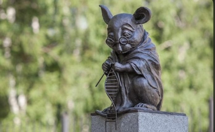 கண்களில் கண்ணாடி போட்டுக்கொண்டு, துணியை பின்னுவது போன்று கைகளில் ஊசியுடன் டிஎன்ஏ-வை பின்னுவதுபோல் வடிவமைக்கப்பட்டுள்ளது. உலகின் பல்வேறு விதமான காரணங்களுக்காக சிலைகள் வைக்கப்பட்டுள்ள நிலையில், இந்த எலியின் சிலை உலகளவில் கவனம் பெற்றுள்ளது.
