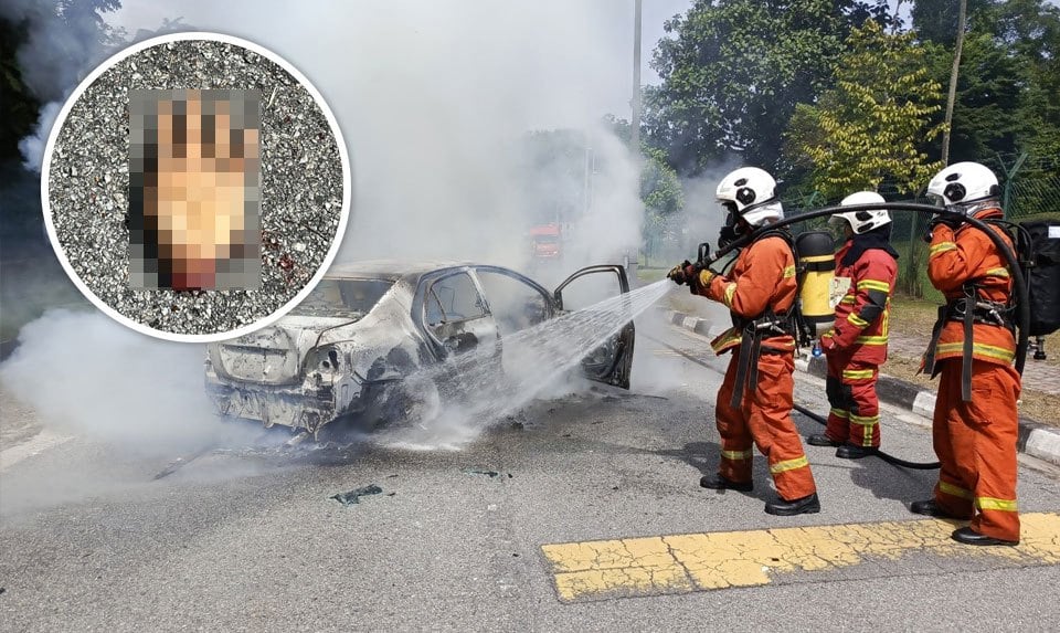 Anggota bomba yang memadam kebakaran kereta berhampiran Hospital Bahagia Ulu Kinta, Tanjung Rambutan, hari ini menemui pergelangan tangan manusia yang putus.