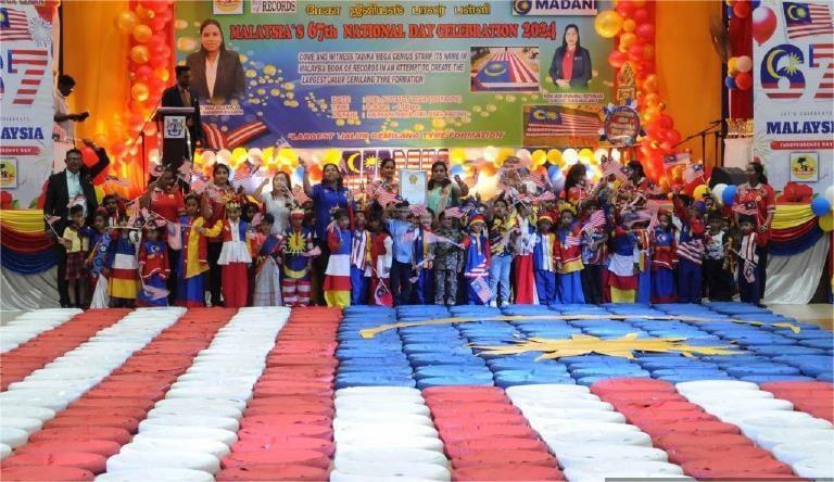 Pengetua Tadika Mega Genius, R. Mohanambal berkata, tayar terpakai itu disusun dengan saiz 21.93 meter panjang, dan 7.61 meter lebar, berjaya diletakkan didalam Malaysia Book Of Records (MBR) sebagai susunan tayar terbesar berbentuk Jalur Gemilang.