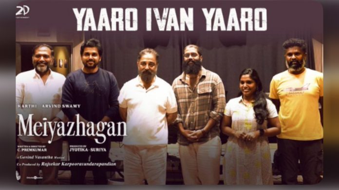 இப்படத்தில், ‘நான் போகிறேன்’ மற்றும்’யாரோ இவன் யாரோ’ எனத் துவங்கும் இரு பாடல்களை நடிகர் கமல்ஹாசன் பாடியுள்ளார். இந்நிலையில் மெய்யழகன் படத்தில் பாடல்கள் பாடிய உலகநாயகன் கமல்ஹாசனுக்குநடிகர் சூர்யா நன்றி தெரிவித்துள்ளார்.
