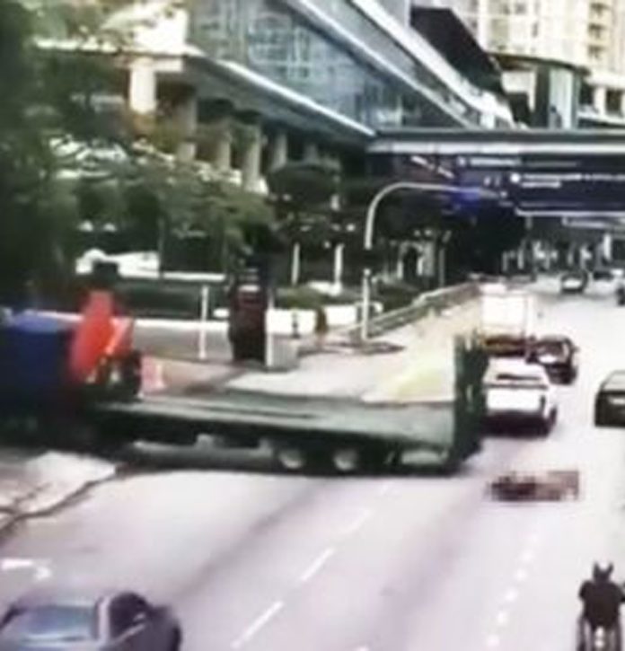 அவர் கூறியபடி, 32 வயதான லோரி ஓட்டுநர், வாகனத்தின் பிரேக் திரவத்தை நிரப்பும் பணியில் கட்டுமான இடத்தில் இருந்தார். இந்தச் செயலியின் போது, எதிர்பாராதவிதமாக லோரி தானாகப் பின்னோக்கிச் சென்று, பாதுகாப்பு வாயிலின் ஊடாக பிரதான வீதியில் மோதி 32 வயதுடைய நபர் பயணித்த மோட்டார் சைக்கிள் மீது மோதியுள்ளது. பாதிக்கப்பட்டவர் விழுந்து, லோரியின் வலது பின் டயருக்கு அடியில் சிக்கிக் சம்பவ இடத்திலேயே இறந்துவிட்டார் என்று முகமட் ஸம்சுரி விளக்கினார். மேலும், லோரி அடுத்தடுத்த பாதையில் கார் மீது மோதியதில், அதன் ஓட்டுநருக்கு நெற்றியில் காயம் ஏற்பட்டது.