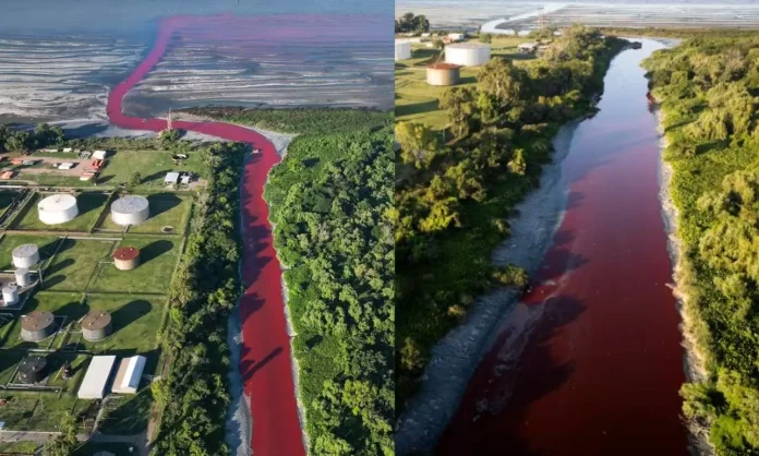 அர்ஜென்டினா தலைநகரான பியூனஸ் அயர்ஸின் புறநகர்ப் பகுதியில் உள்ள ஒரு ஓடை நீர் ரத்த சிவப்பு நிறத்தில் மாறியுள்ளது அனைவரையும் அதிர்ச்சியில் ஆழ்த்தியுள்ளது.