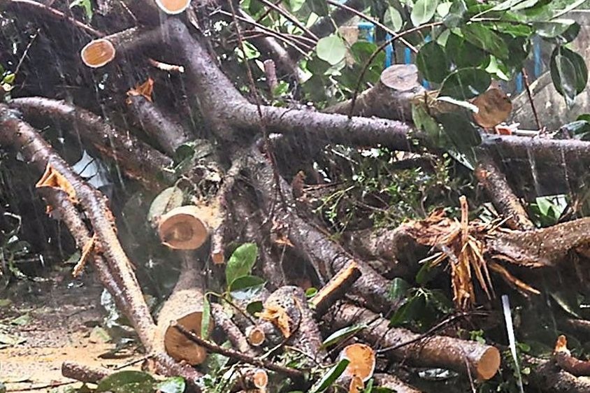 தீயணைப்புக் குழுவினர் விழுந்த மரத்தை வெட்டும் பணியில் ஈடுபடுகின்றனர் என்று அவர் மேலும் சொன்னார்.