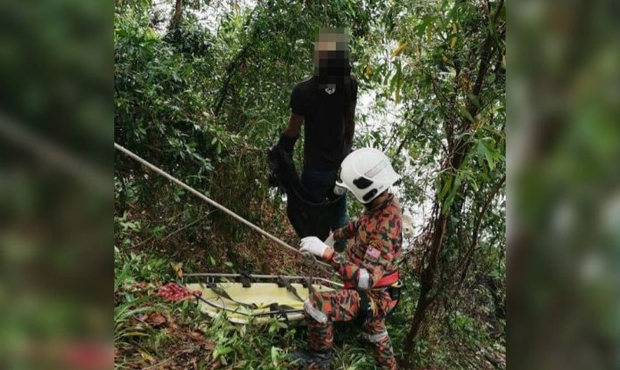 “Anggota bomba mengambil masa kira-kira sejam untuk menurunkan mangsa menggunakan tali penyelamat dengan kaedah sistem takal,” katanya ketika dihubungi, hari ini.
