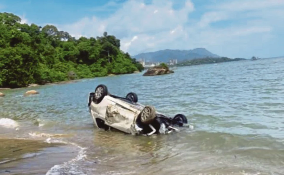 “Sejurus melalui selekoh, kereta hilang kawalan dan terbabas lalu jatuh gaung, sebelum tercampak ke pantai.