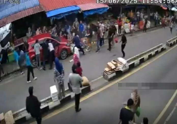 சமூக வலைத்தளங்களில் வைரலாகி வரும் CCTV காட்சிகளின்படி, சிவப்பு நிற பெரோடுவா மைவி கார் சாலையின் இடதுபுறத்தில் இருந்த பல கடைக்காரர்களை மோதியது.