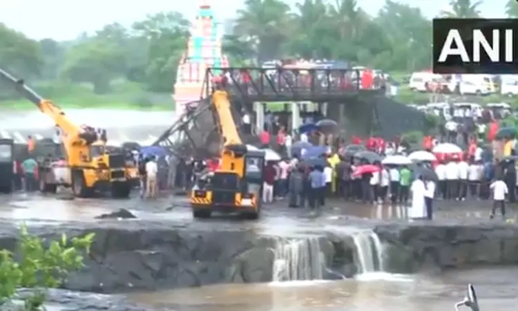மும்பை,மராட்டிய மாநிலம் புனே அருகே அமைந்துள்ள மாவல் தாலுகாவிற்கு சுற்றுலா பயணிகள் அதிக அளவில் வருகை தருகின்றனர். இந்த நிலையில், இன்று அங்குள்ள டெகு பகுதியில் இந்திரயானி ஆற்றின் மீது கட்டப்பட்டிருந்த பாலத்தின் மீது சுற்றுலா பயணிகள் நின்று கொண்டிருந்தபோது எதிர்பாராத விதமாக பாலம் இடிந்து விழுந்தது.