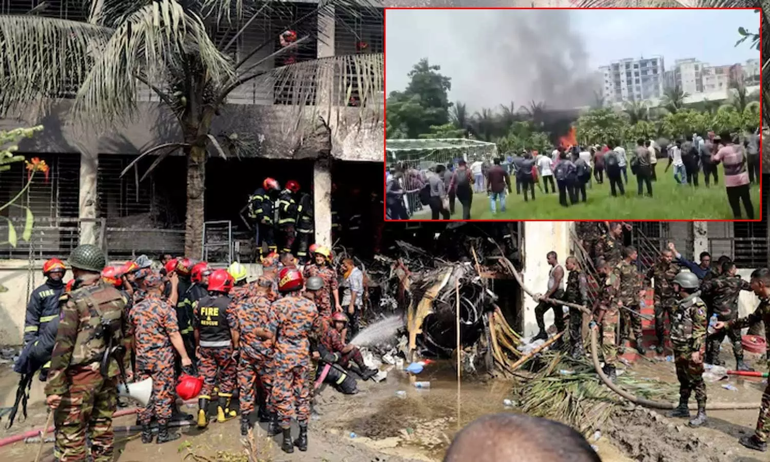 வங்கதேசத்தில் போர் விமானம் பள்ளிக்கூடம் மீது விழுந்து மோதிய விபத்தில், பள்ளியில் இருந்த 16 மாணவர்கள், 2 ஆசிரியர்கள் உயிரிழந்த துயரச் சம்பவம் நடந்துள்ளது.