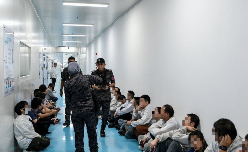 முதல் சோதனை பேட்டரி தொழிற்சாலையில் நடத்தப்பட்டதில், பல்வேறு நாட்டைச் சேர்ந்த 210 தொழிலாளர்கள் விசாரணை செய்யப்பட்டனர். இதில் 16 பங்களாதேஷ் ஆண்கள், 15 சீன ஆண்கள், ஒரு இந்தோனேஷியா ஆண், ஒரு இந்திய ஆண் மற்றும் ஒரு மியான்மர் பெண் ஆகிய 34 பேர் கைது செய்யப்பட்டனர்.