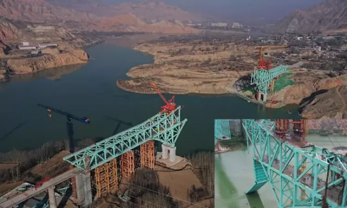பீஜிங்,சீனாவின் கியூங்ஹாய் மாகாணத்தில் பாயும் யல்லோ ஆற்றில் ரெயில்வே பாலம் கட்டும் பணி நடைபெற்று வருகிறது.