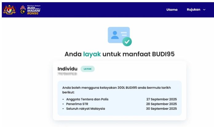 நிதி அமைச்சகம் இன்ஸ்தா கிராமில் வெளியிட்ட தகவலின் படி, இன்று காலை 9 மணி முதல் அதிகாரப்பூர்வ புடி95 (BUDI Madani) தளத்தின் மூலம் தகுதி சரிபார்ப்பு செய்யலாம்.