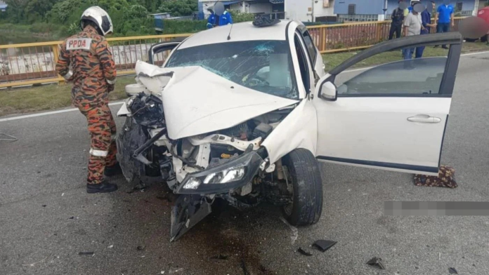 பெர்சியாரன் தெங்கு அம்புவான், பிரிவு 22 இல் புரோத்தோன் சாகா கார் விபத்துக்குள்ளானதில் தந்தை மரணம், தாய் மற்றும் மூன்று பிள்ளைகள் படுகாயமடைந்துள்ளனர்.
