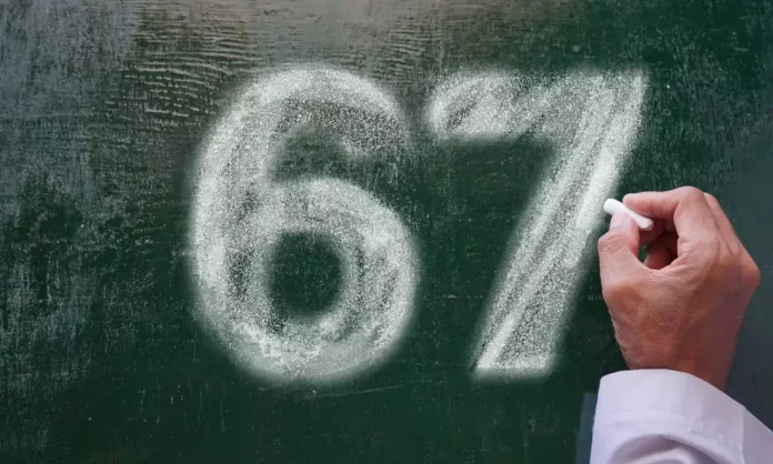 2010 and 2024 இடையில் பிறந்தவர்கள் ஜென் ஆல்பா ஆவர். அவர்களுக்கு 67 என்பது உற்சாகத்தை வெளிப்படுத்ததும் ஒரு குறியீட்டு வழியாக மாறியுள்ளது. டிக்டாககில் 67 என்ற ஹேஷ்டேக் 2 மில்லியன் பதிவுகளை தாண்டியுள்ளது.