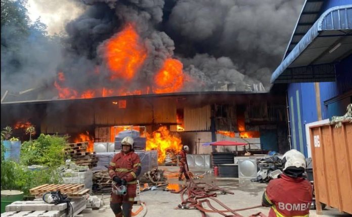 சுங்கை பூலோவில் உள்ள நான்கு சேமிப்பு கிடங்குகளில் இன்று காலை பெரிய தீ விபத்து ஏற்பட்டது.