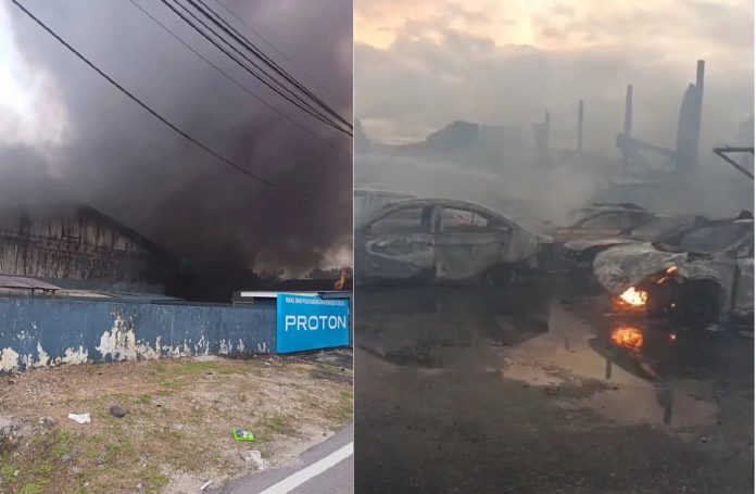 சுங்கை பூலோ, ஜாலான் இண்டஸ்ட்ரி 9 (Jalan Industri 9) பகுதியில் அமைந்துள்ள பிரபல கார் நிறுவனமான புரோட்டானின் சேவை மையத்தில் நேற்று மாலை ஏற்பட்ட தீ விபத்தில் 50-க்கும் மேற்பட்ட வாகனங்கள் கடுமையாகச் சேதமடைந்தன.