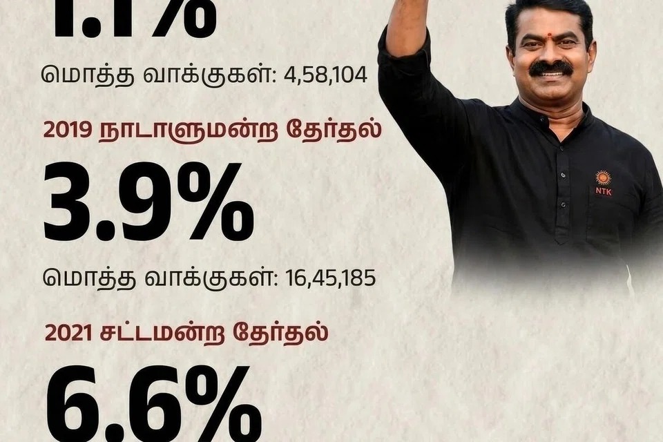 ஒரு சதவீத வாக்குகளில் தனது அரசியல் பயணத்தைத் தொடங்கிய நாதக, 2021 சட்டமன்றத் தேர்தலில் 6.6% வாக்குகளையும் (30 லட்சம் வாக்குகள்), 2024 மக்களவைத் தேர்தலில் 8.2% வாக்குகளையும் (35 லட்சம் வாக்குகள்) பெற்று, மாநிலக் கட்சி என்ற தகுதிக்கான அங்கீகாரத்தை எட்டியுள்ளது.
